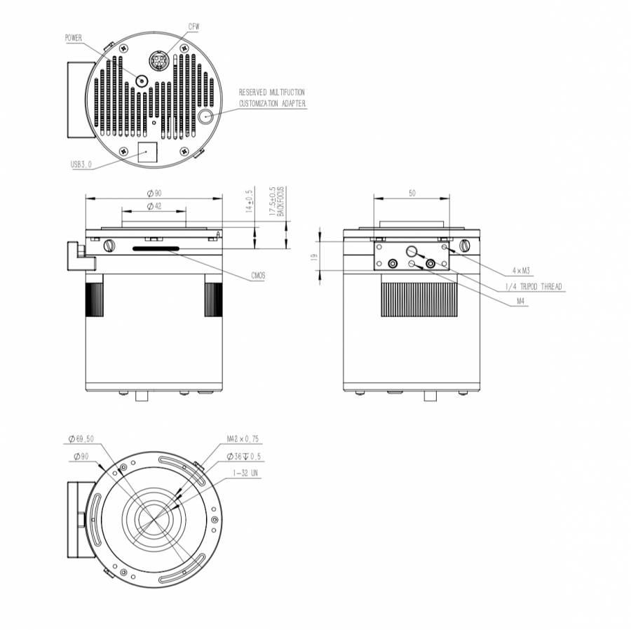 Kamera roku 2022. Čtvercový čip, BSI technologie, dvojstupňové chlazení, 1 GB interní paměti, rychlost až 27 fps., hmotnost 845 g. Technické podrobnosti na stránkých QHY CCD.