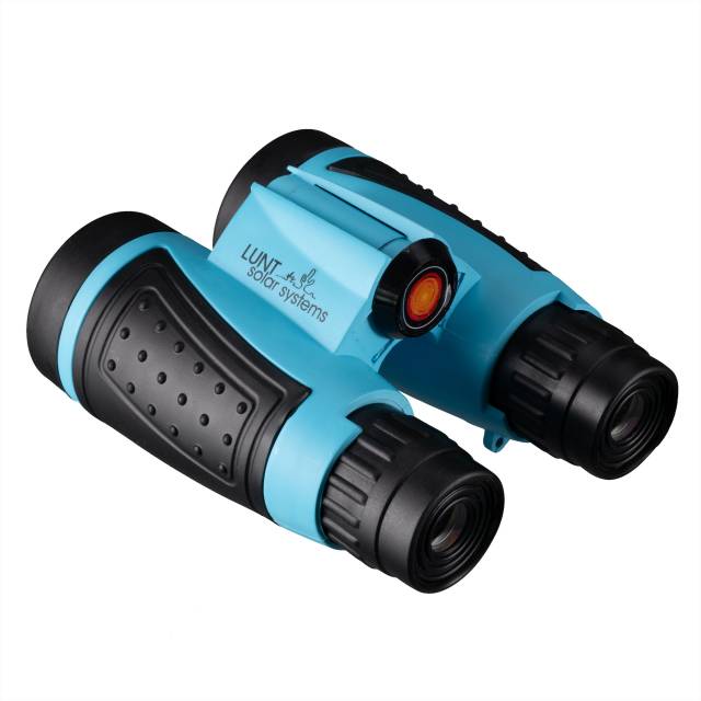 LUNT Mini sluneční dalekohledy 6x30 v modré barvě jsou kompaktní optické přístroje určené výhradně pro bezpečné pozorování Slunce v bílém světle. Díky vestavěnému certifikovanému filtru můžete pohodlně sledovat sluneční skvrny, tranzity i částečná a úplná zatmění.