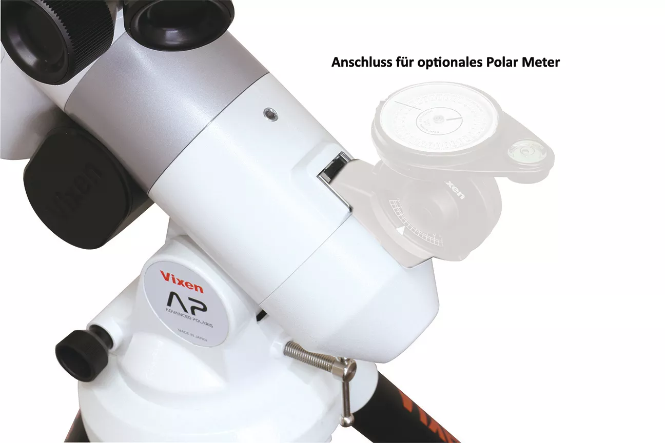 Inovativní polární hledáček poskytuje nový způsob, jak polarizovat váš teleskop. Jednoduše zarovnejte hvězdy v křížovém zaměřovači se stejnými hvězdami na noční obloze. Polární zarovnání je dosaženo pomocí 3 referenčních hvězd. Polární hledáček je osvětlený, aby usnadnil orientaci a automaticky se vypne po 3 minutách, aby šetřil baterii.